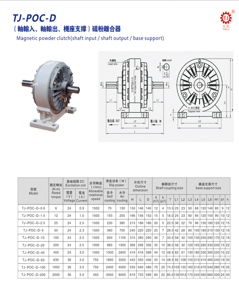 POC-D帶機械底座磁粉離合器類別:磁粉離合器